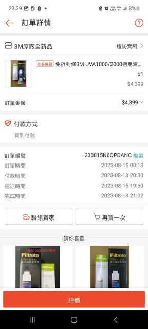 購自蝦皮,8/18到貨,購入原價4399元