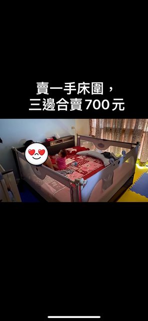 雙人加大床的升降床欄三片合售不拆賣,一手價賣700元,贈三個Y字帶,這座升降床欄陪伴