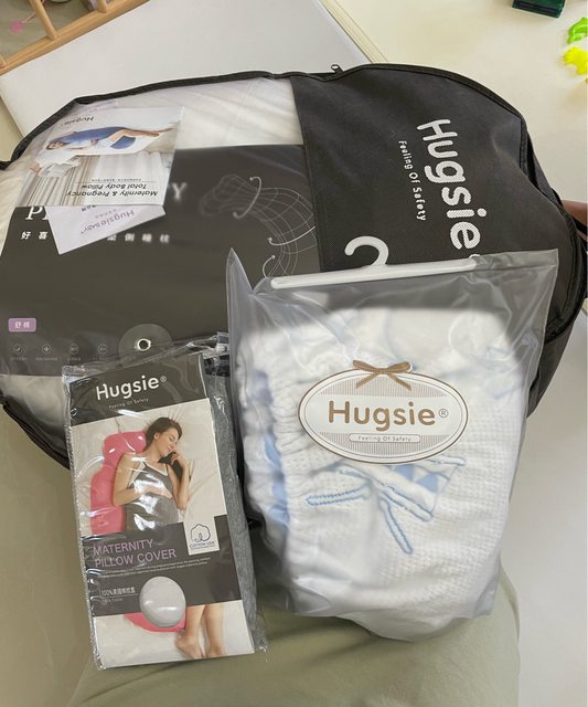1. Hugsie 孕婦枕(舒眠款)與寶寶秀秀枕套 (天藍米奇款)