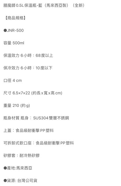 4:膳魔師0.5L保溫瓶(藍色)
