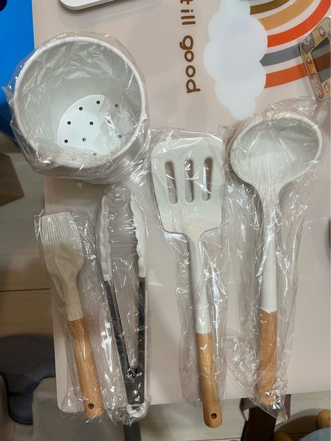 5:潔白矽膠櫸木料理廚具五件組