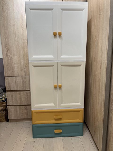 2、兒童簡易衣櫃/$800/材質是塑膠的,尺寸如下,可拆開搬運再自行組裝