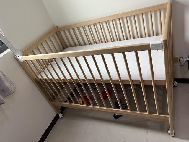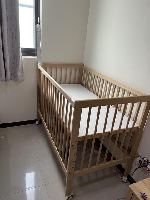 實際使用約一年半,單邊護欄可降下變成床邊床,哄嫩嬰很方便
