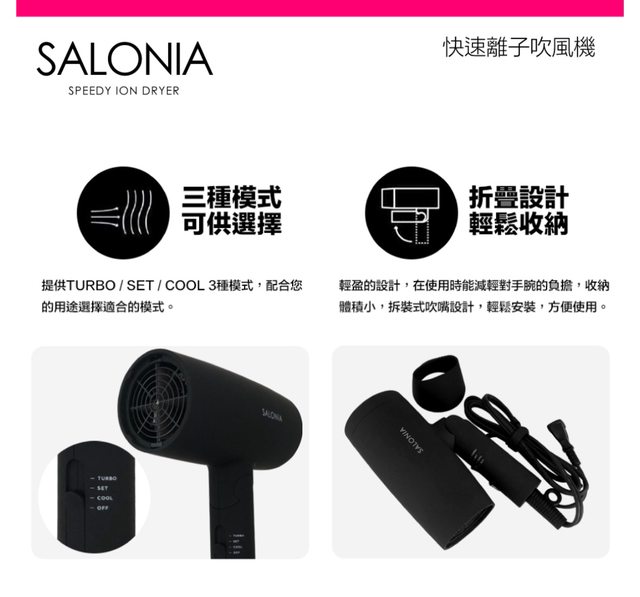 日本代購Salonia負離子吹風機SL-013(可折疊)