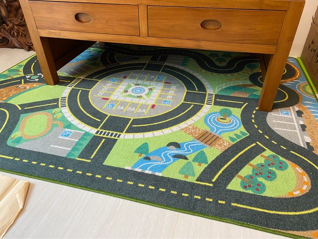 1.好市多購入交通圖案地毯,附擺設房子、車子一組,小孩很愛 售300元(洽中)