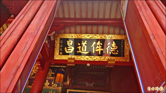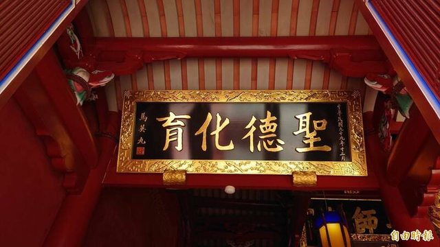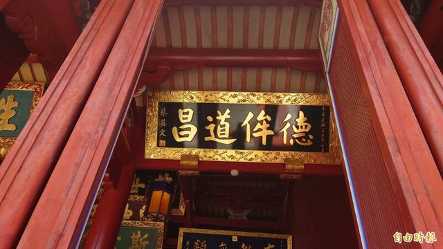 目前台南孔廟大成殿懸掛前總統蔡英文的「德侔道昌」匾額,未來將換掛現任總統賴清德