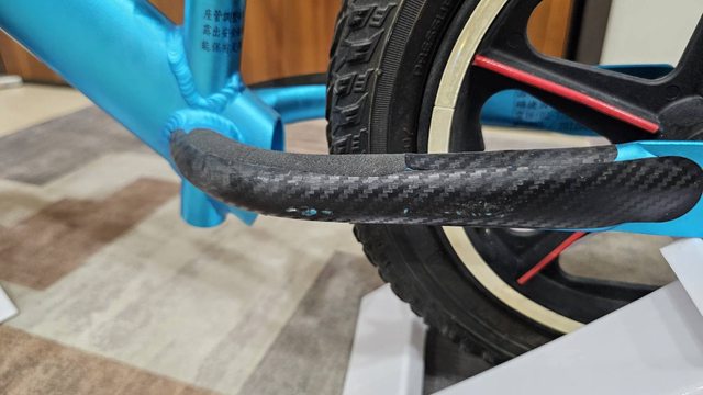 衝刺時的雙腳放置處,有防滑貼紙及仿碳纖維防刮貼紙,以防倒車時刮傷。