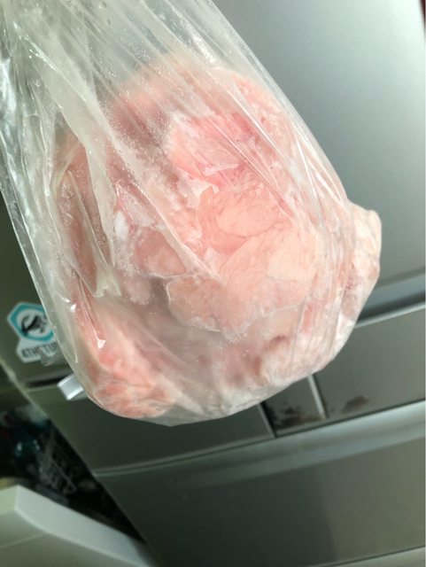 料理剩下的大量雞腿皮,已冷凍結成一大塊