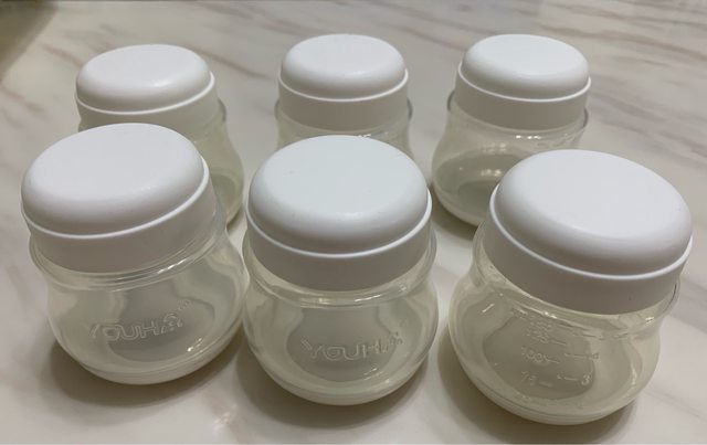 個原廠集乳瓶及瓶蓋(極少用,瓶身可當擠乳器的配件使用,是一樣的,拍完照又找出一