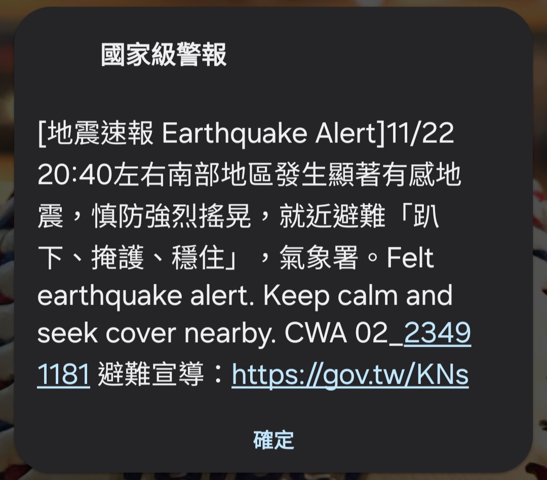 shao870605: ,剛剛不斷聽到地鳴 11/22 21:11