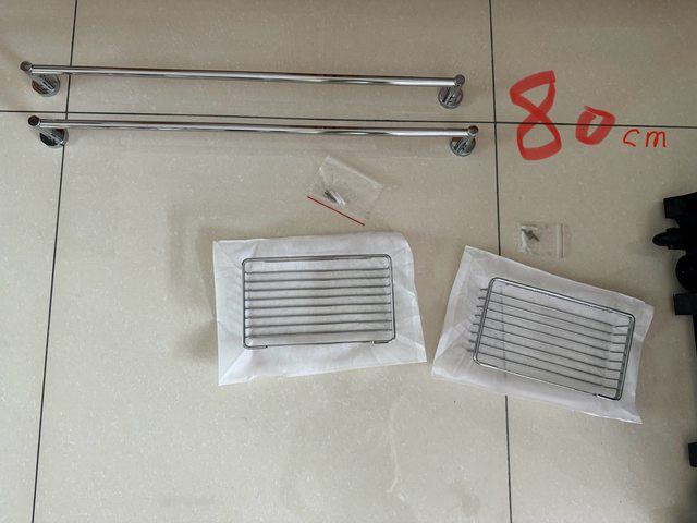 兩組二手80公分毛巾架 拆卸下來的 外表鍍鉻有些脫落 但安裝後不影響使用 沒有膨脹螺