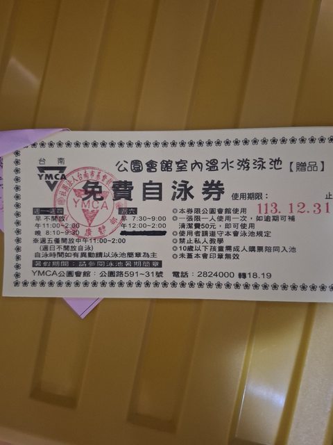 標題[交易] YMCA公園會館自泳卷