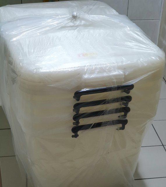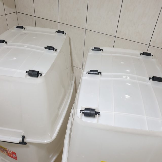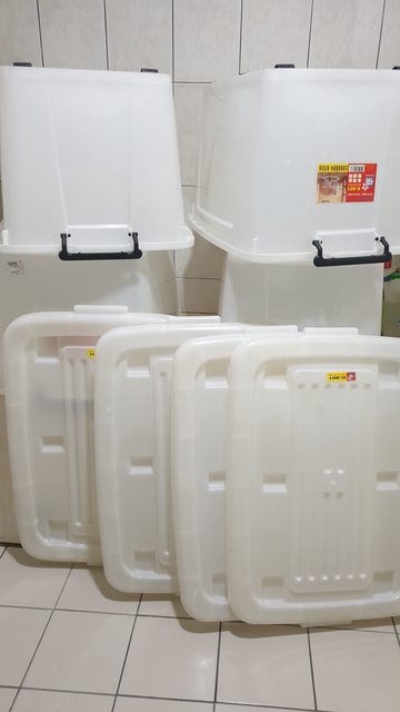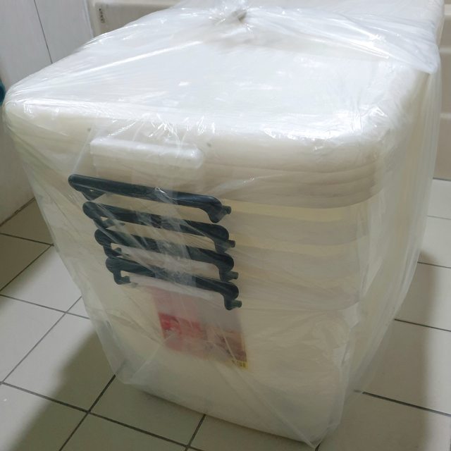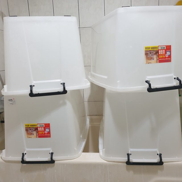 <已售出>2.整理箱85L(長68*寬48*高38.8)4個150元 2003年製,有使用的痕跡,約4成新厚實耐用。