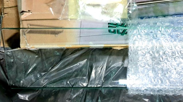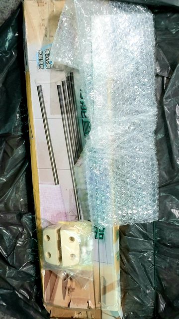 <已售出>16.全新浴室玻璃置物架50元 外盒是衣物架的外盒,外盒陳舊。
