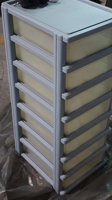4.七層文件櫃附輪100元 約3成新,閒置多年,透明塑膠有泛黃,最下面一層角落有裂痕,用手壓合就看不出來, 可用膠帶黏貼固定,或拆掉最下面一層。
