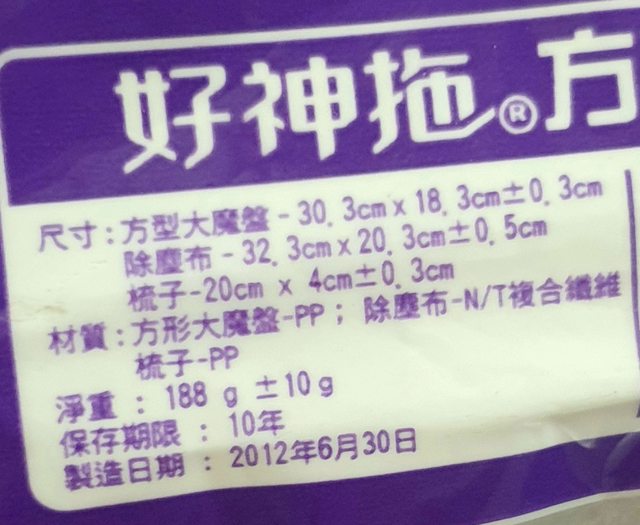 21.全新好神拖方形布盤50元 2012/6/30製。