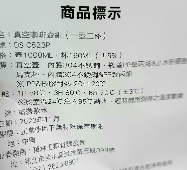 <已售出>18.全新Dashiang真空咖啡壺組50元 2023/11製,外盒有贈品字樣貼紙。