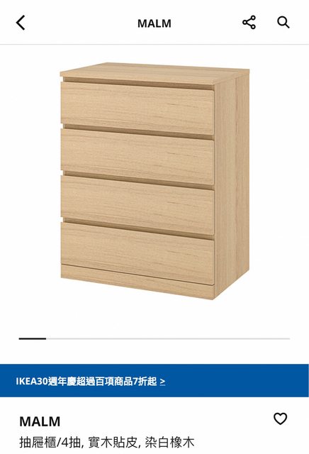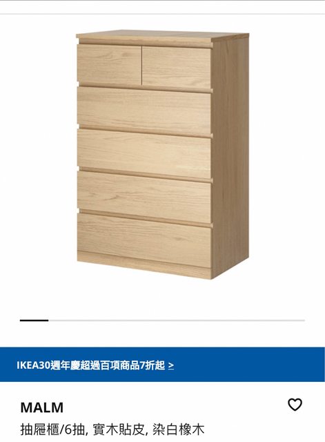 1. IKEA MALM 抽屜櫃 6抽*1: $3,300