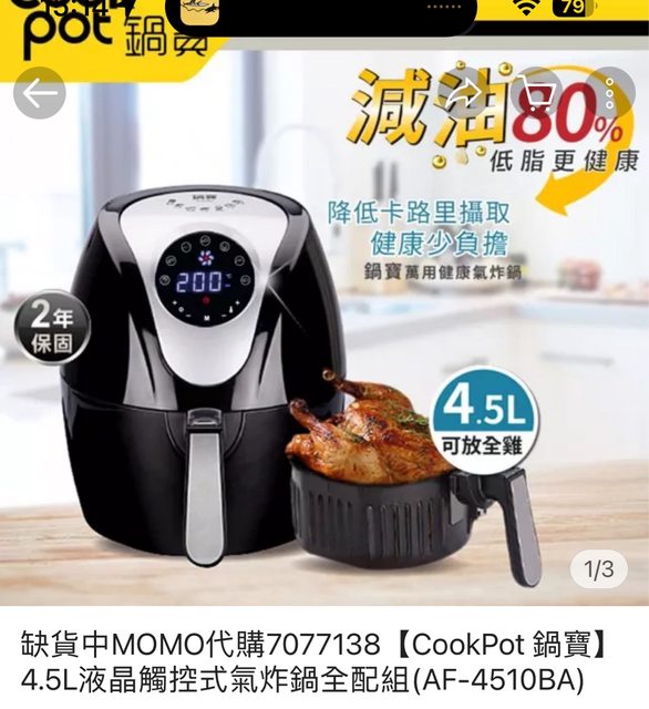 5. 氣炸鍋 鍋寶 AF 4510BA*1: $1,300