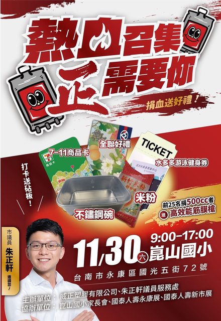 標題[活動] 捐血11/27、本週末送好禮