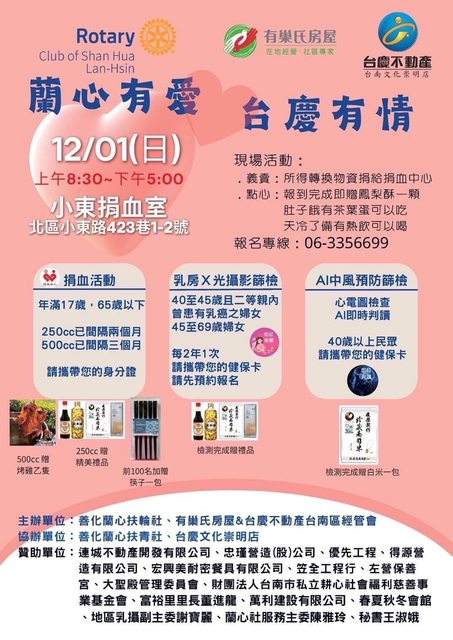 12/1(日)小東捐血室8:30-17:00