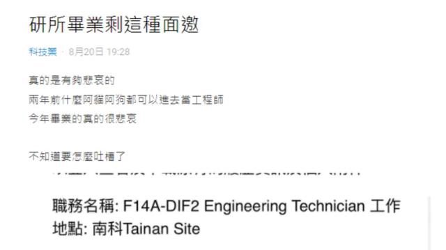 噓 zero501595 : 唬爛文?我同學碩士去面試助工就被打槍說學歷太高了 08/22 02:52