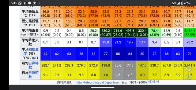 印度的熱是真的蠻熱的,你可以參考各地的月均溫