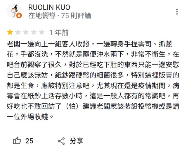 → miinux : 應該要求老闆噴酒精+戴手套 101.10.111.49 07/13 17:52