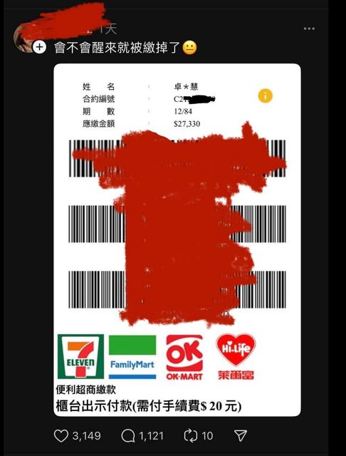 最近網上流行女生秀出欠繳費帳單