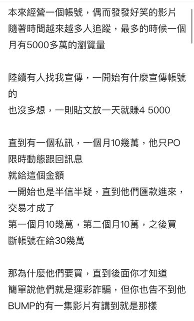剛剛看了一篇文章 在講說賣帳號的事情