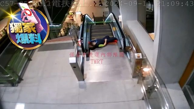 後來有1名女乘客搭乘手扶梯上樓,許男也試圖掙扎想起身,但無法如願;女乘客上樓跨