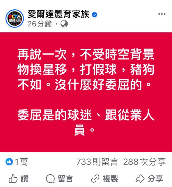 剛在愛爾達體育家族FB看到的