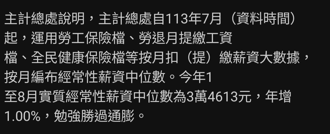 : 台灣實質經常性中位數薪資最近的新聞說