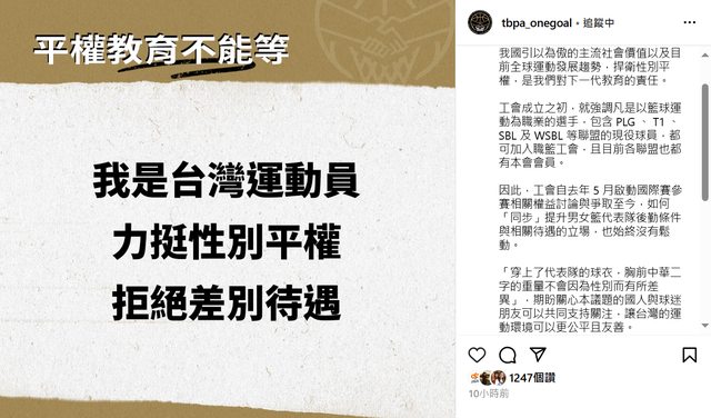 標題[討論] 男女球員力挺工會不分性別爭取國家隊後勤