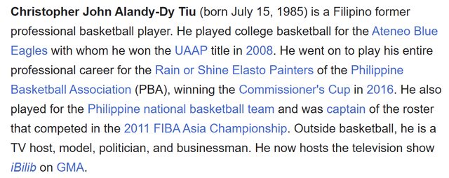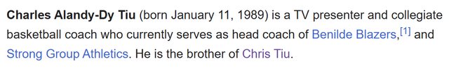 是前菲律賓華裔國手張念賢(Chris Tiu)的弟弟