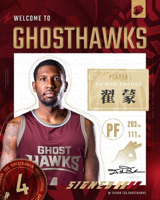 台鋼獵鷹今(6)日宣佈203公分美國籍大前鋒翟蒙(De‘Mon Brooks)加盟,翟蒙畢業於