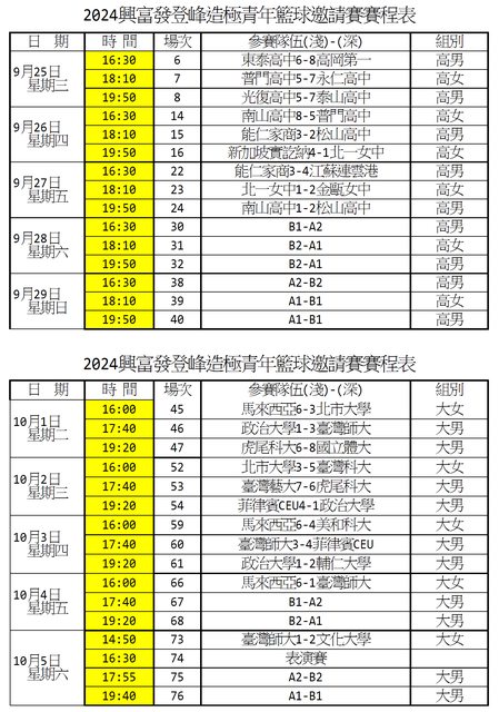 【賽程表】