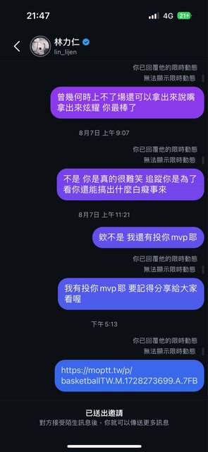我今天只是把這篇文用ig私訊傳給他