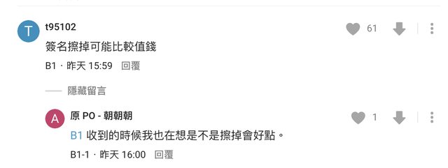 : - 簽名擦掉可能比較值錢