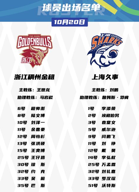 CBA 例行賽 10/20 賽程