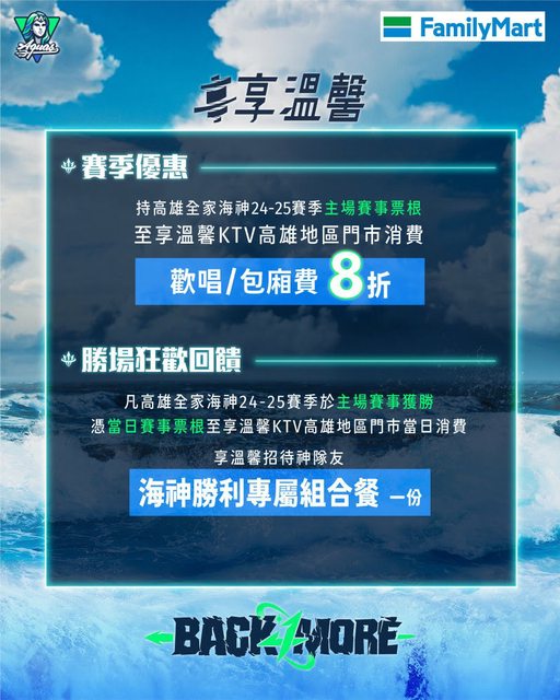 海神本週將繼續在主場出賽,優惠活動如附圖。
