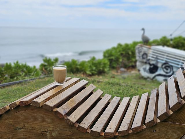 而我又貪心的要了一杯拿鐵想靜靜地坐下來看海聽浪,可能東部的海有種魔力,三不