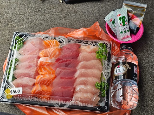 然而其實第一魚市場並沒有提供飲食區,因此好幾次我都是帶著生魚片到後面的卸貨