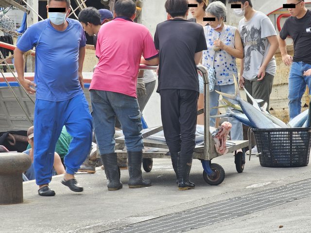 作業區找邊邊坐著吃,還可以看到漁船靠岸卸下漁獲