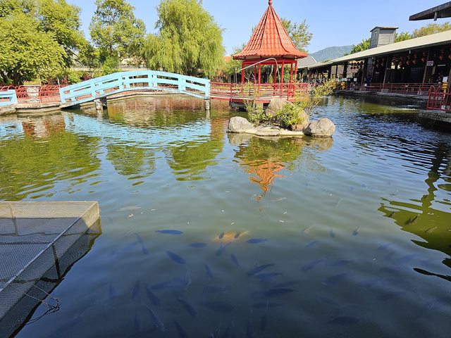 感受著紅茶自口中一路向下流淌,冰敷體內的熱,一邊看看這池與魚也是蠻愜意的