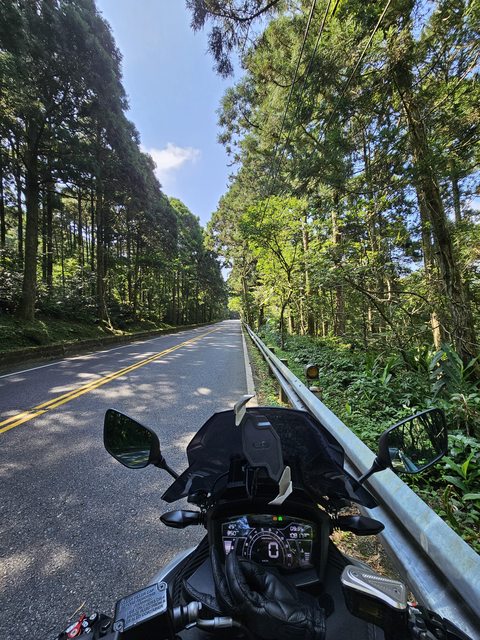 每次騎車經過北宜的時候最愛這一段路,有兩側挺立的綠林,有頭頂的藍天白雲;道