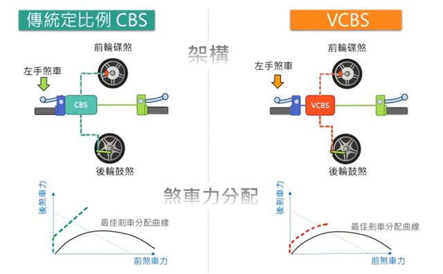 現在的CBS2.0說好聽可以依照剎車皮磨耗狀況去分配力道 但實際上真的不像官方介紹的這麼理想 基本上還是換湯不換藥,只是改成前4後6的比例去做剎車 相較下多年前提出的VCBS的剎車理論其實更能有效提升行車安全 依照騎士剎車力道做前後輪剎車力的調配 https://i.imgur.com/OkGHh2s.jpg