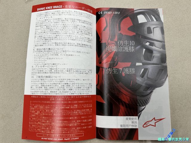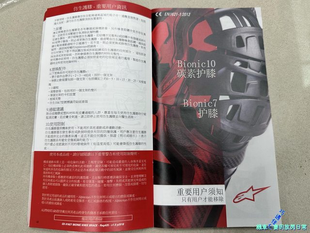 這兩張主要是拍機械腳上就有標明CE認證資訊:護膝EN1621-1:2012 Lv1認證,