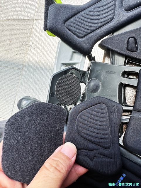 膝蓋兩側襯墊也都是魔鬼氈,而襯墊本身背面是短短毛絨,可以很牢固的沾黏上,