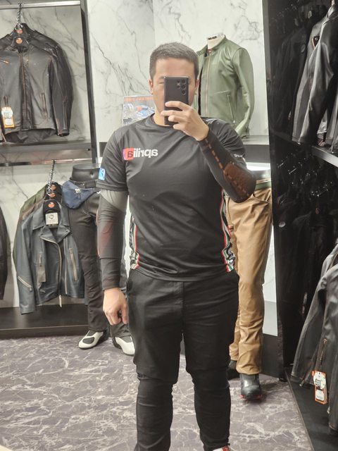 實測要套在目前慣用的手套都沒什麼問題。然後中間有詢問老闆娘皮外套的部分,掏出一